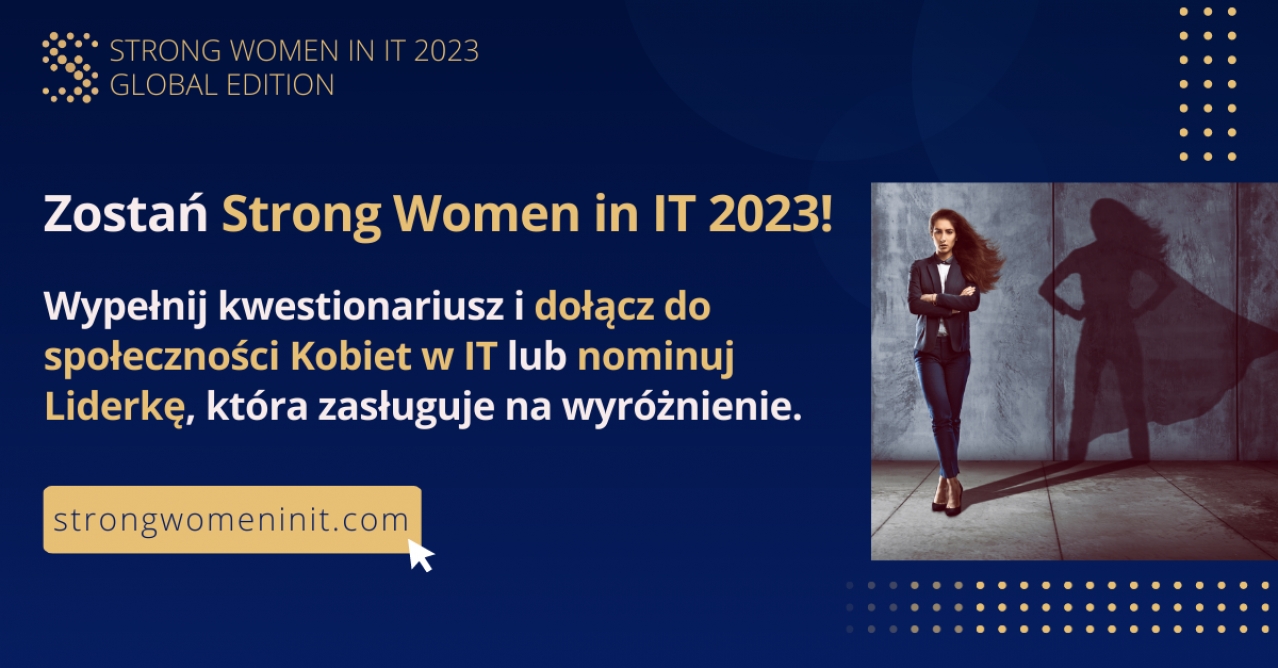 Wypełnij ankietę i zostań jedną ze Strong Women in IT 2023! Wyróżnij swoją koleżankę, siostrę, mamę lub przełożoną, niech poczuje się dostrzeżona.