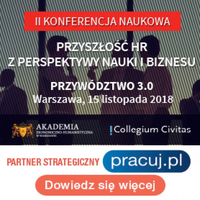 W trakcie konferencji „Przyszłość HR z perspektywy nauki i biznesu” organizowanej przez Collegium Civitas oraz Akademię Ekonomiczno-Humanistyczną (dawniej Wyższą Szkołę Finansów i Zarządzania), eksperci i praktycy z największych firm i organizacji w Polsce będą omawiać najnowsze trendy w zakresie zarządzania kapitałem ludzkim oraz konkretne rozwiązania wspierające rozwój biznesu. Wydarzenie odbędzie się 15 listopada w godz. 9:30-17:00 w Dago Centrum Rondo 1 przy ulicy Rondo ONZ 1 w Warszawie.