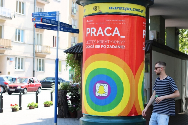 Na słupie reklamowym, w miejscu gdzie warszawska ulica Tamka krzyżuje się z Dobrą, zamieszczony został plakat rekrutacyjny zawierający prostą instrukcję: "PRACA! Jesteś kreatywny? Zgłoś się po zadanie" oraz snapchatowy kod, który po zeskanowaniu odsyła do profilu agencji. Co 24 godziny odświeżany jest także zachęcający do udziału w rekrutacji komunikat w MyStory na agencyjnym profilu. Jakie jest zadanie rekrutacyjne? Na razie dowiedzą się o tym tylko snapchaterzy poszukujący pracy w agencji.