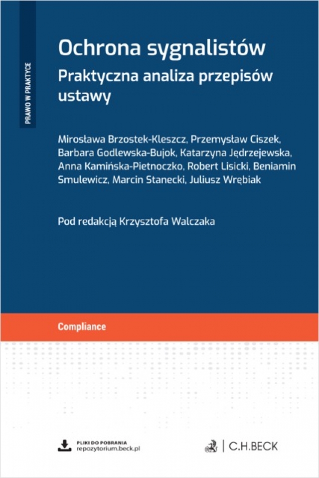 Więcej o publikacji na stronie https://www.ksiegarnia.beck.pl/22332-ochrona-sygnalistow-praktyczna-analiza-przepisow-ustawy-krzysztof-walczak-prof-uw