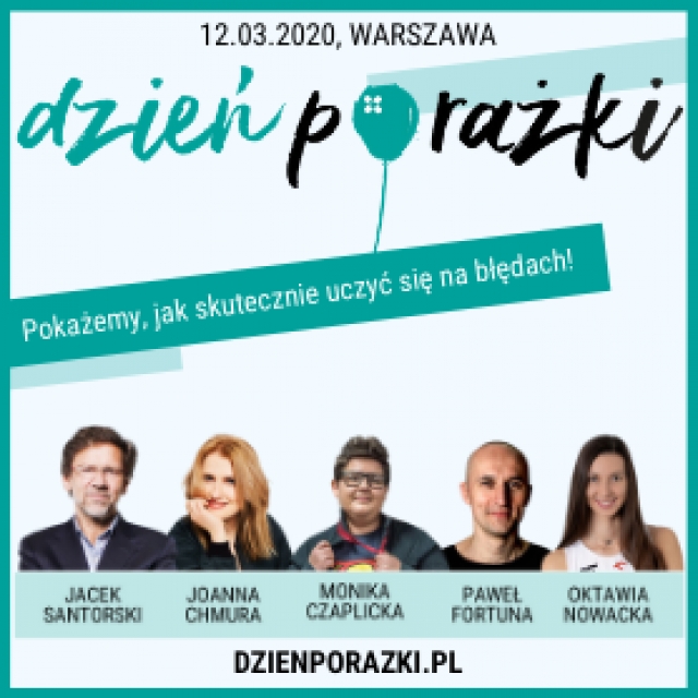 Dzień Porażki to unikalna konferencja krzewiąca kulturę uczenia się na błędach, która jest niezbędna w budowaniu przyjaznego środowiska pracy, otwartości, innowacyjności, odwagi w działaniu i mierzeniu się z własną niedoskonałością. Pokazujemy, że nieumyślne porażki mogą stać się trampoliną do rozwoju.