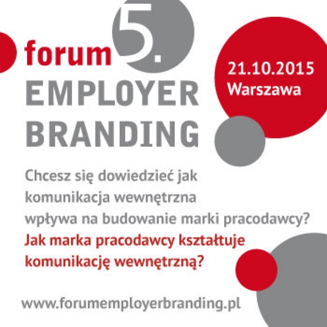 Komunikacja wewnętrzna a budowanie marki pracodawcy- pod takim hasłem już 21.10.2015 roku w Warszawie odbędzie się 5. Forum Employer Branding – całodniowe spotkanie poświęcone kwestiom budowania marki pracodawcy. Inicjatorem i organizatorem Forum jest KALITERO, firma doradcza zajmująca się budowaniem marek. Program całodniowego spotkania wypełnią prezentacje przygotowane przez przedstawicieli wiodących organizacji takich jak: AMBRA, DB Schenker Logistics, Future Processing, K2, Kongsberg Automative, SAS Institute, które przedstawią najlepsze praktyki związane z obszarem komunikacji wewnętrznej. W drugiej części spotkania odbędzie się debata oksfordzka z udziałem zaproszonych gości.