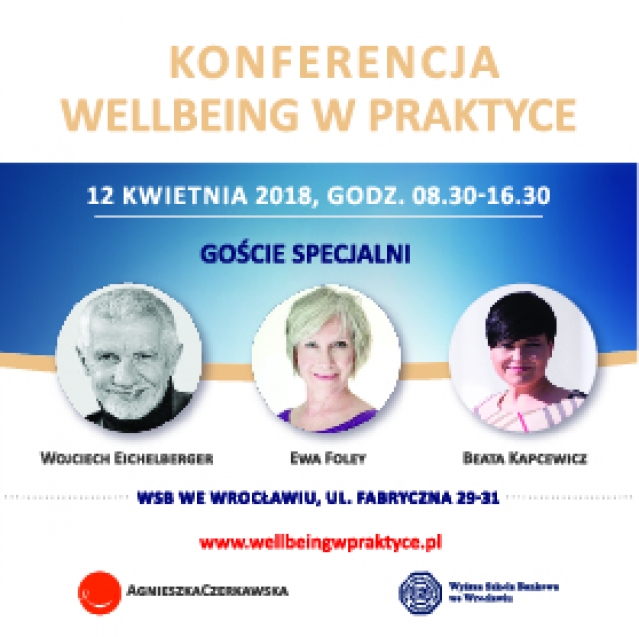We Wrocławiu 12.04.2018 odbędzie sie konferencja "Wellbeing w praktyce". Jej celem jest dostarczenie wiedzy, inspiracji, innowacyjnych i praktycznych rozwiązań związanych z dobrostanem pracowników. Dobrze zarządzane organizacje postrzegają ludzi w organizacji holistycznie jako kapitał, a efektywne kierowanie ludźmi musi uwzględniać dbałość o stan psychofizyczny pracownika. Organizacje dbające o dobrostan pracowników; wykazują wzrost efektywności, zaangażowania, lojalność wobec firmy co bezpośrednio przekłada się na wynik biznesowy oraz pozytywny wizerunek organizacji.