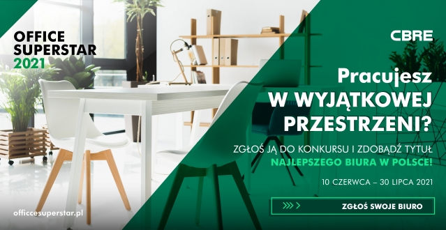 Przedłużająca się praca zdalna sprawiła, że zatęskniliśmy za biurem. Obecnie 64% pracowników chciałoby pracować w systemie mieszanym, czyli częściowo z biura, a częściowo z domu – wynika z badania Grafton Recruitment i CBRE. I nadszedł moment, kiedy można te pragnienia realizować. Dlatego właśnie teraz CBRE startuje z IV edycją konkursu Office Superstar, do którego mogą zgłaszać się wszystkie organizacje, które są dumne ze swoich biur. To także świetna okazja, żeby pokazać i podpatrzeć, jak zmieniły się biura w pandemii. W tym roku zgłaszać się można w 9 kategoriach, a termin upływa 30 lipca.