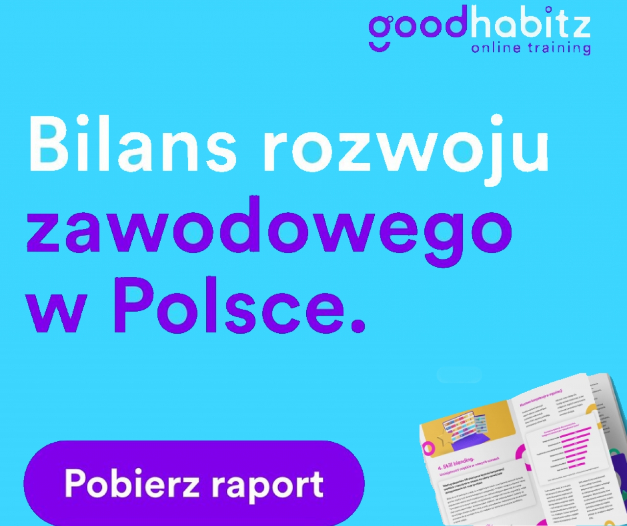 Aby lepiej zrozumieć trendy związane z nauką i rozwojem, firma GoodHabitz stworzyła pierwszy raport w Polsce poświęcony bezpośrednio opiniom i prognozom ekspertów HR ds. szkoleń. Badanie Bilans rozwoju zawodowego analizuje aktualny stan inwestycji w rozwój pracowników w polskich firmach, strategie zarządzania talentami, a także budżety i wyzwania z jakimi mierzą się pracownicy HR. Raport wskazuje zestawy najbardziej pożądanych kompetencji przyszłości oraz określa obszary, które wymagają pracy i skupienia ze strony organizacji.