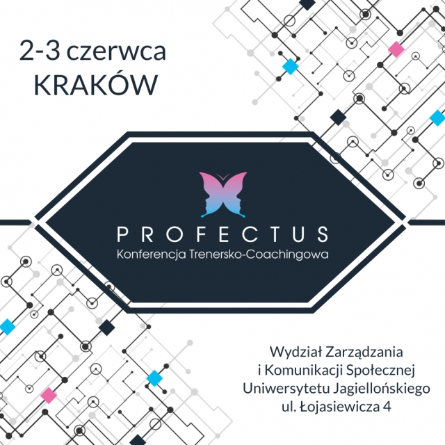 Koło Nauk Psychologicznych PRAGMA, działające przy Instytucie Psychologii Stosowanej Uniwersytetu Jagiellońskiego, organizuje VII edycję Konferencji Trenersko - Coachingowej PROFECTUS “Szkolenia i coaching jako strategiczny system wspierania organizacji”. Odbędzie się ona w dniach 2-3 czerwca 2018 roku w Krakowie na Wydziale Zarządzania i Komunikacji Społecznej Uniwersytetu Jagiellońskiego.