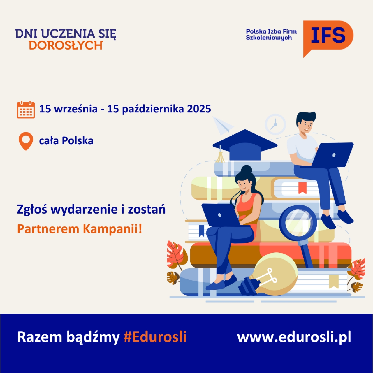 Polska Izba Firm Szkoleniowych już po raz kolejny zaprasza do udziału w ogólnopolskiej kampanii Dni Uczenia się Dorosłych 2025, która odbędzie się w dniach 15 września – 15 października 2025 roku na terenie całej Polski.