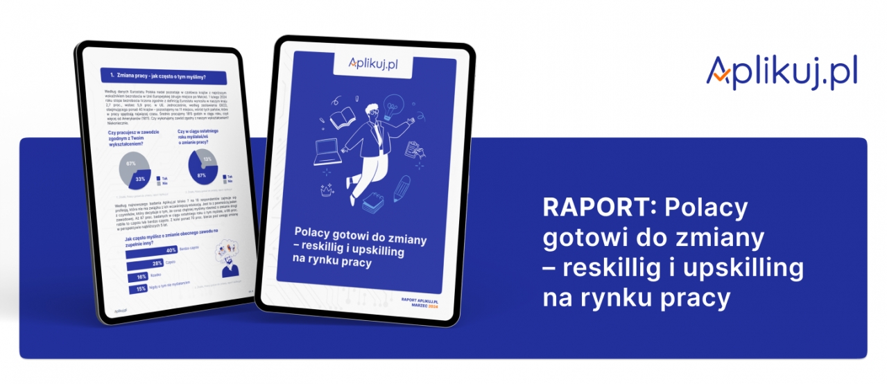Najnowszy raport Aplikuj.pl jest dostępny tutaj: Polacy gotowi do zmiany – reskillig i upskilling na rynku pracy.